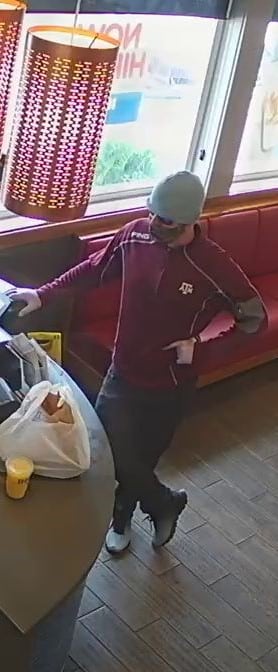Police said Mathew Scott Eaglehouse, 29, of Kerrville, was arrested on Saturday on suspicion of the 9:43 a.m. robbery. Eaglehouse entered the Sidney Baker Highway restaurant wearing a mask, knit cap and a Texas A&M pullover shirt before fleeing in a Toyota Prius, police said.