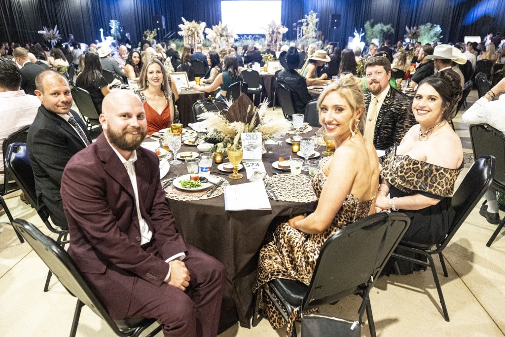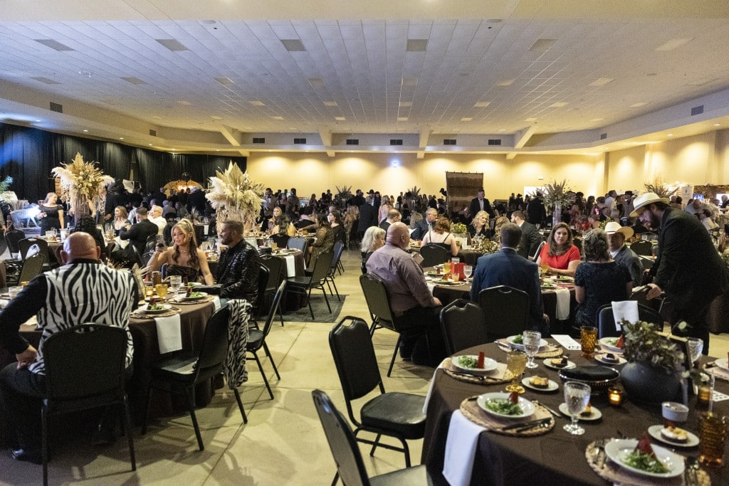 The event’s theme, dubbed “western chic” or “Rhinestone cowboy,” draws inspiration from the National Finals Rodeo in Las Vegas. Organizers encourage attendees to think “all the glitz” with fancy dresses paired with boots, hats, bolo ties and turquoise jewelry.