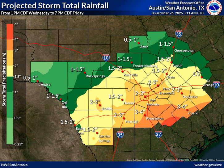 Today's high will reach near 80 degrees with cloudy skies and east-southeast winds around 10 mph. Rainfall between one-half and three-quarters of an inch is possible.