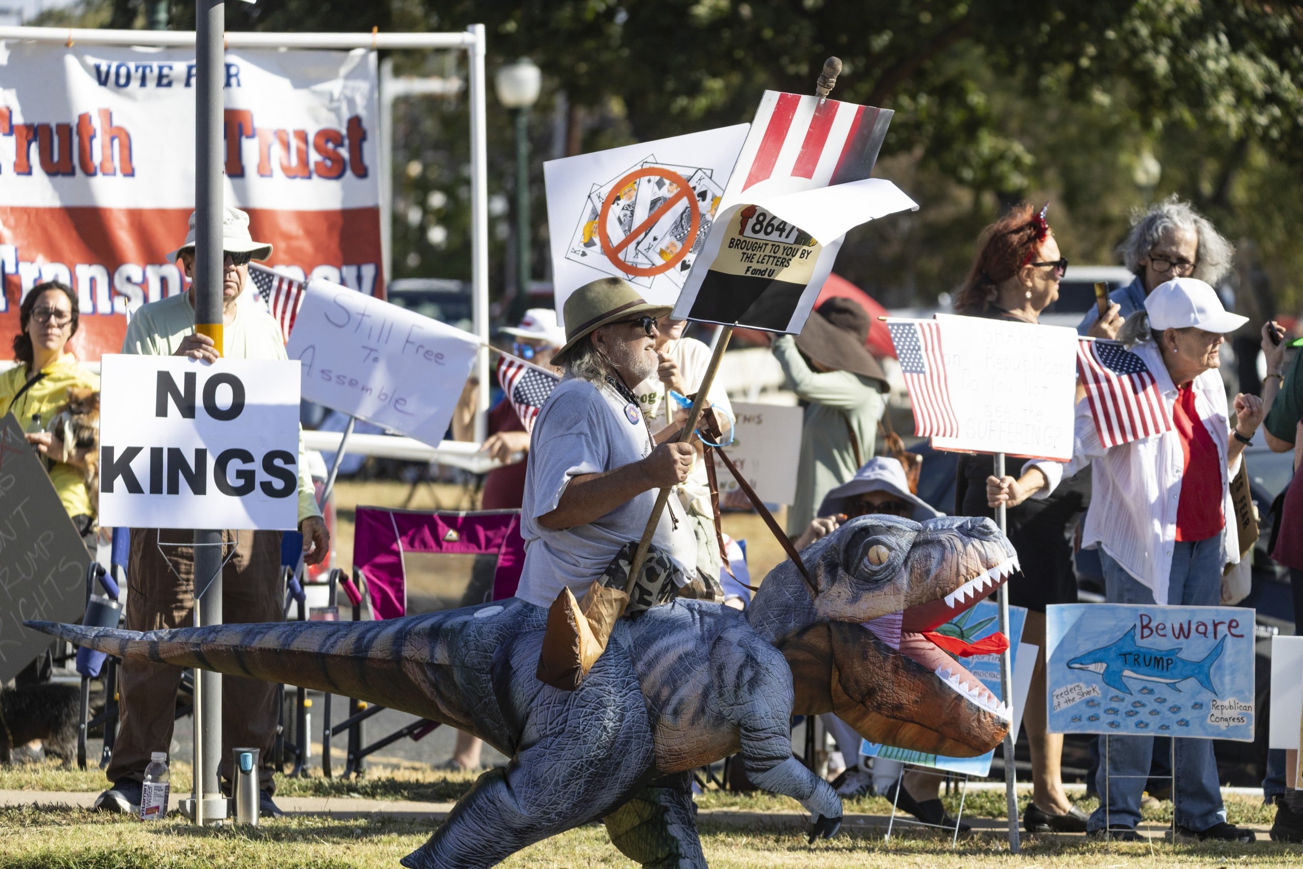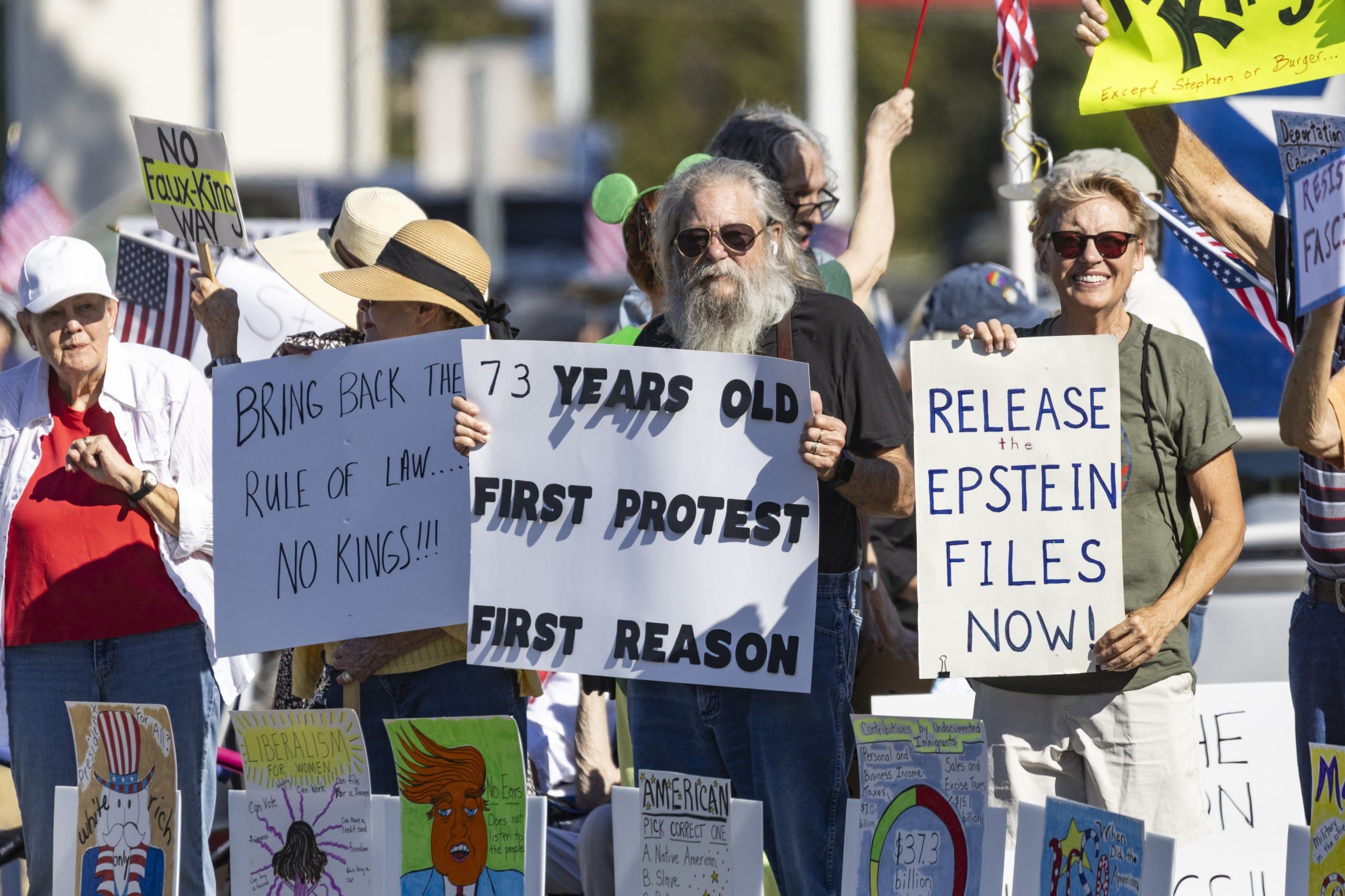 The largest turnout so far this year, the protest also had the most diverse signage, highlighting issues ranging from rising facism and masked ICE raids to releasing the Epstein files and Medicare cuts.