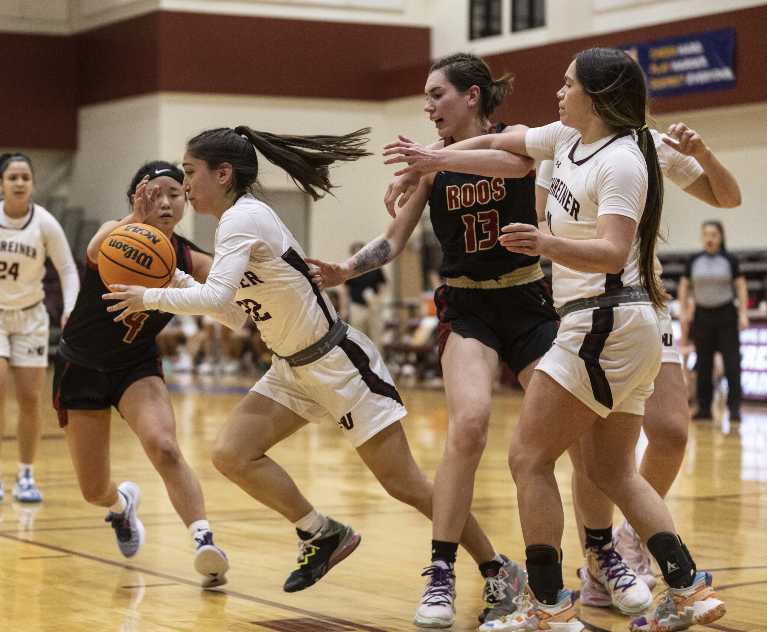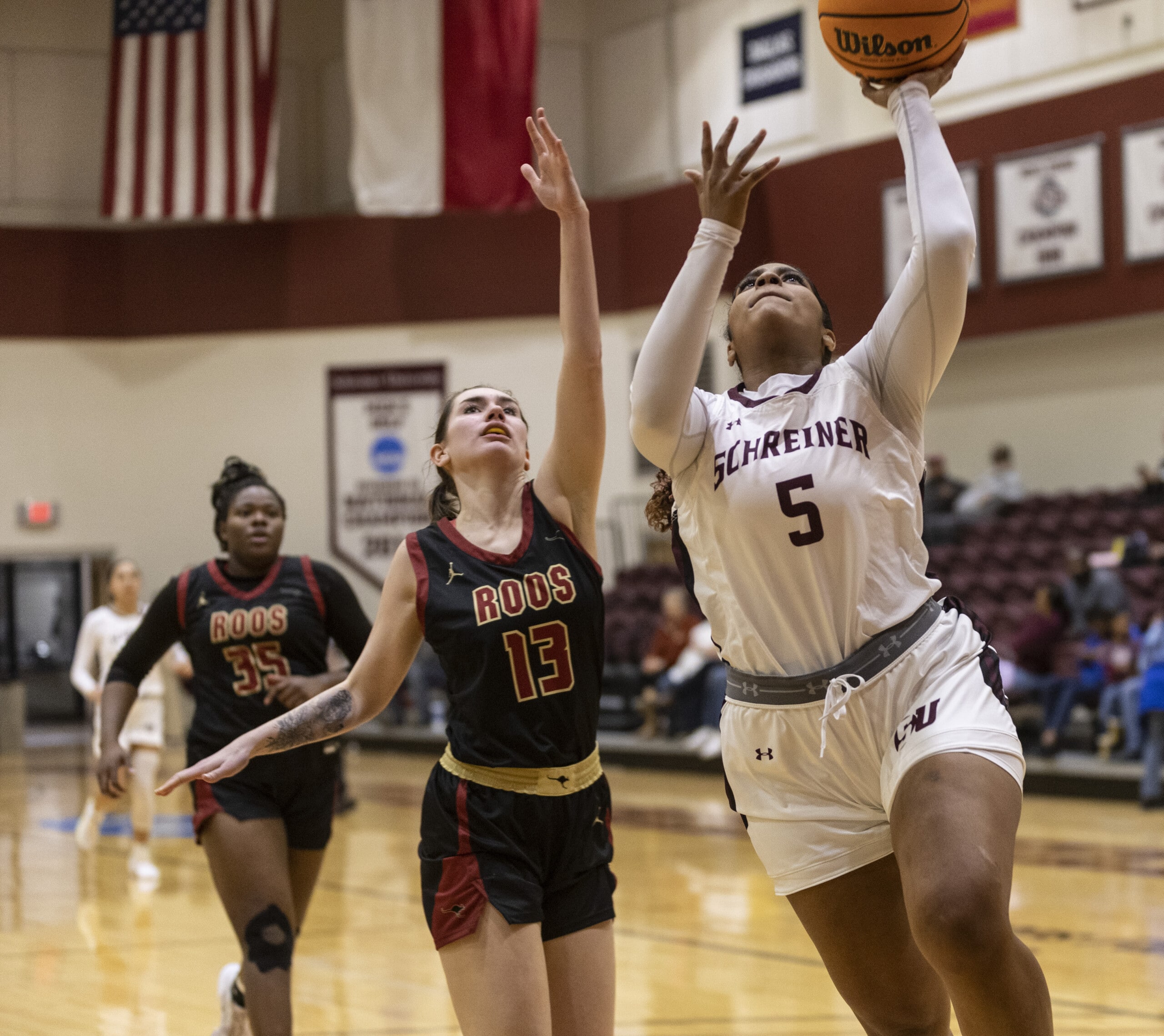 After a 32-21 halftime lead, Schreiner saw the Roos battle back, cutting into the Mountaineers’ lead. Austin cut Schreiner’s lead to five early in the fourth quarter, but Thomas answered by hitting a 3-pointer to boost the lead back to eight. The Roos cut it to a two-point 50-48 lead with 4:25, and Thomas hit another shot to give the Mountaineers breathing room.